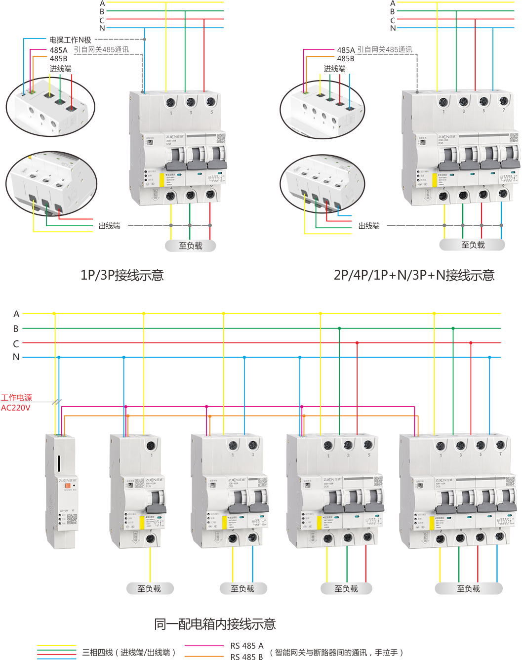 ZCB1-125H系列物聯網斷路器適用于額定交流電壓至400V、 50Hz/60Hz的配電網絡。