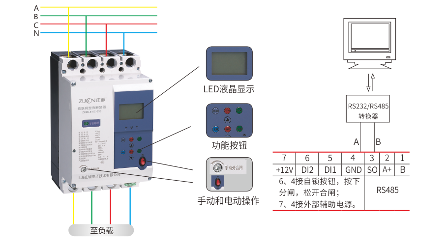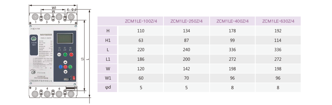 產(chǎn)品主要用來(lái)連接大功率末端負(fù)載,總線路保護(hù)控制使用,也可防止電氣線路或電氣設(shè)備接地故障引起電氣火災(zāi)和電氣設(shè)備損壞事故及用來(lái)對(duì)人身觸電危險(xiǎn)提供間接接觸保護(hù)。ZCMLE1iC系列物聯(lián)網(wǎng)塑殼斷路器將剩余電流動(dòng)作保護(hù)器、塑殼斷路器、智能電力儀表、智能控制器等多種產(chǎn)品集成于一體。采用液晶顯示,具有剩余漏電流監(jiān)測(cè)、電壓數(shù)據(jù)監(jiān)測(cè)、線路過(guò)欠壓保護(hù)、缺相保護(hù)、過(guò)載保護(hù)、過(guò)電流保護(hù)、斷路保護(hù)、短路保護(hù)、電源側(cè)斷零、防雷保護(hù)、自動(dòng)跟蹤、報(bào)警分閘等多項(xiàng)功能。同時(shí)可實(shí)現(xiàn)遠(yuǎn)程控制、遠(yuǎn)程分合閘、用電信息采集、故障檢測(cè)和保護(hù)、故障錄波分析、故障記錄事件和分合閘事件記錄等功能。