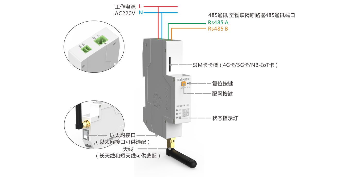 ZCB1-GW智能網關主要用來為物聯網斷路器提供聯網雙向數據通訊使用,將斷路器采集到的電能計量、電能質量、溫度、電流、電壓、漏電等數據信息傳輸至物聯網斷路器平臺,同時可將軟件平臺指令下發(fā)至斷路器,為每一條普通電路實現數字化、可視化、遠程化,匯總成為一個更大的電源能耗管理網絡,最終實現智慧電力管理,為更好地規(guī)劃用電,節(jié)約用電、高效的運維管理提供可靠支持。