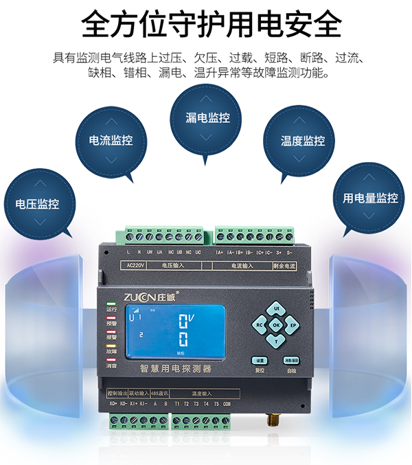 具有監測電氣線路上過壓、欠壓、過載、短路、斷路、過流、缺相、錯相、漏電、溫升異常等故障監測功能;
