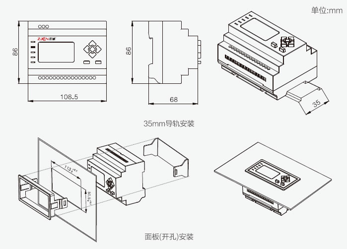 安裝方式 | 導軌式安裝、面板嵌入式安裝(需加面板安裝附件ZC-FJ) |