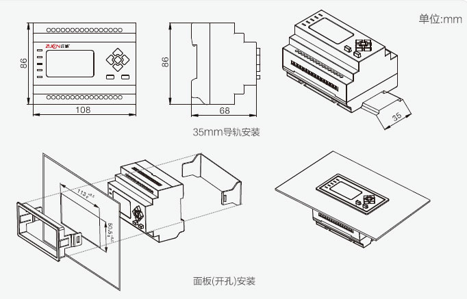 面板開孔安裝(長113mmx寬50.5mm)