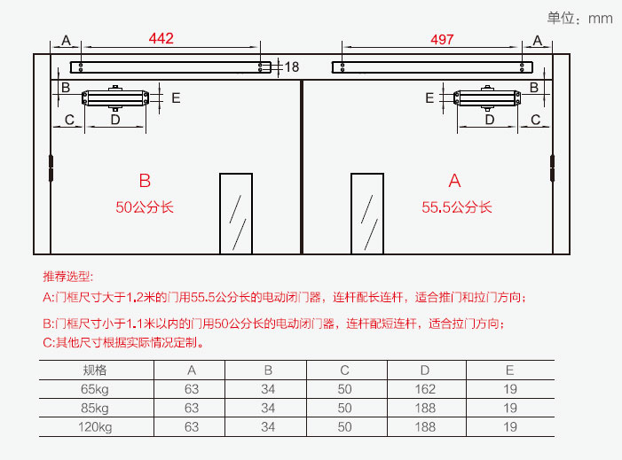 適用門(mén)寬(國(guó)標(biāo)) | 門(mén)寬≤830mm | 門(mén)寬≤930mm | 門(mén)寬≤1030mm | 門(mén)寬≤1500mm | 門(mén)寬≤1800mm |
